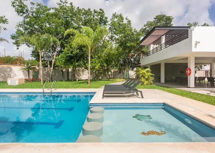The 3-bedroom Perfect Resort Style House Playa del Carmen villa offers proximity to nearby tourist spots, such as the Delphinus Riviera Maya, situated 4.9 km away.